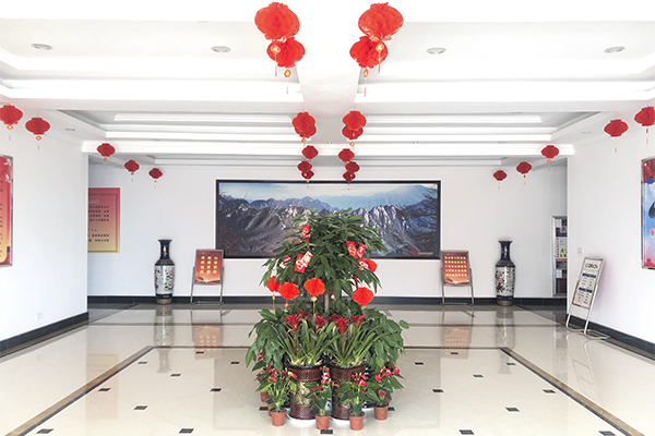 “五百强创一流海螺发展奏华章;双主业拓新域型材转型谱新篇”,激昂的对联、喜庆的灯笼将办公楼装点的年味十足。