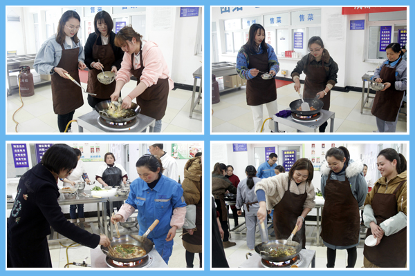 下午15:00,比赛准时开始,来自主各部门的参赛女职工早已做好准备,个个磨拳擦掌、跃跃欲试。首先开展的是特定菜式番茄炒蛋比拼,这道菜十分考验选手们的综合能力,只见女选手们身着统一的工作服,站在操作台前,一手拿刀具,一手拿着食材,垫在砧板上,开始了刀工“展示”,刀刃与砧板发出明快的节奏声,不一会儿食材在选手们的娴熟技艺下在锅里上下翻滚,散发出阵阵香味,让人垂涎三尺。