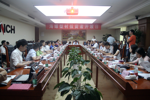6月22日,深交所牵头举办的“践行中国梦·走进上市公司”投资者开放日活动走进海螺型材,在海螺酒店1115会议室,组织召开了现场互动交流会议,深交所投资者教育中心、安徽省证监局、华安证券、国元证券、投资者代表共40余人参加了此次活动,公司总经理王杨林、副总经理虞节玉、总会计师汪涛等参加会议,并与投资者互动交流。