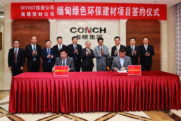 8日下午,缅甸Myint投资公司与海螺型材在海螺集团总部签署了缅甸绿色环保建材项目合作协议。U Soe Win先生和高登榜董事长出席并见证了签约仪式,缅甸Myint集团公司董事会主席U Aung Myint,海螺集团副总经理、型材公司董事长万涌代表双方签署协议。