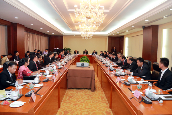 在芜湖海螺国际大酒店309会议室,海螺集团总经理任勇率公司领导和相关部门负责人与缅甸民盟中央经济委员会代表团一行进行了亲切座谈。