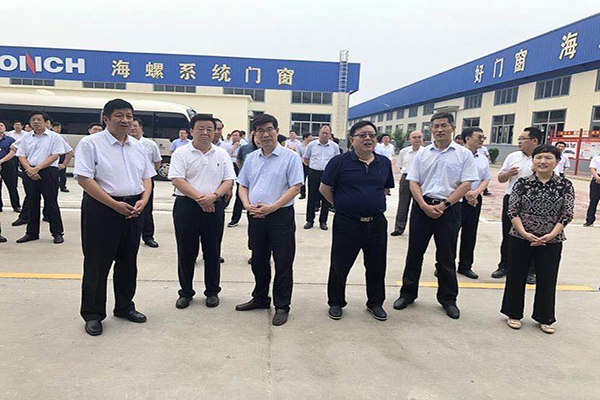 在考察过程中,新颖别致的海螺型材系列产品给李书记一行留下了深刻印象,在塑钢门窗加工车间,李书记拿起公司产品饶有兴致的询问产品配方、工艺流程,亲身感受了海螺系统门窗的优越性能。在生态地板展区前,李书记一行驻足观看,详细了解了生态地板的产品特点和市场前景,对海螺型材加强产品技术创新、推动生态环保事业发展表示赞赏。