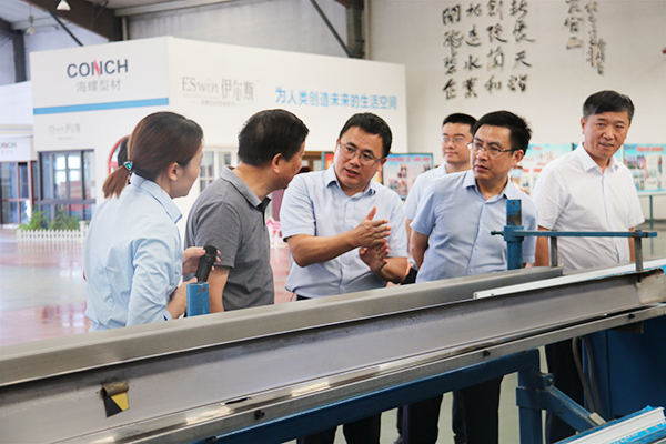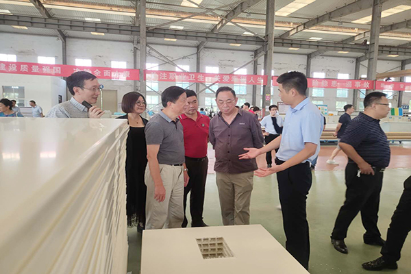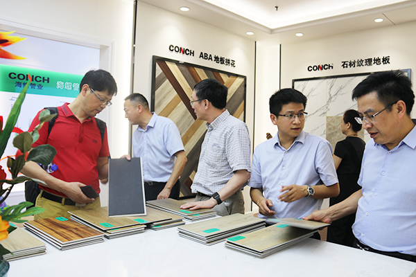 座谈前,客人一行参观了集团展厅、新材料公司、美凯龙家居体验馆、海螺型材三分厂、地板分厂。
