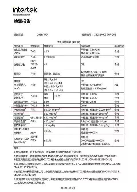 地板零甲醛测试报告