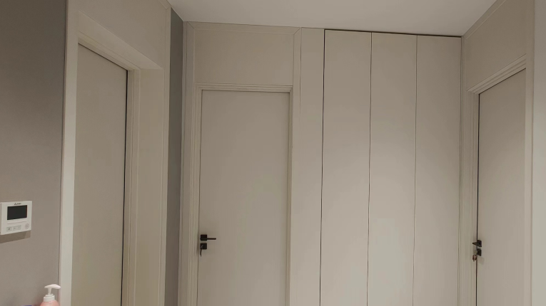 走廊玄关的搭配增加了灵动性,与一门到顶的海螺生态门相邻,既避免了拥挤感,又丰富了层次感。