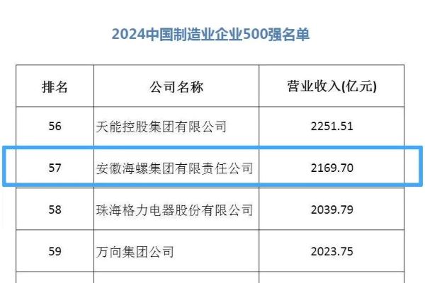 开幕式发布了2024中国制造业企业500强榜单,安徽海螺集团有限责任公司名列第57位。
