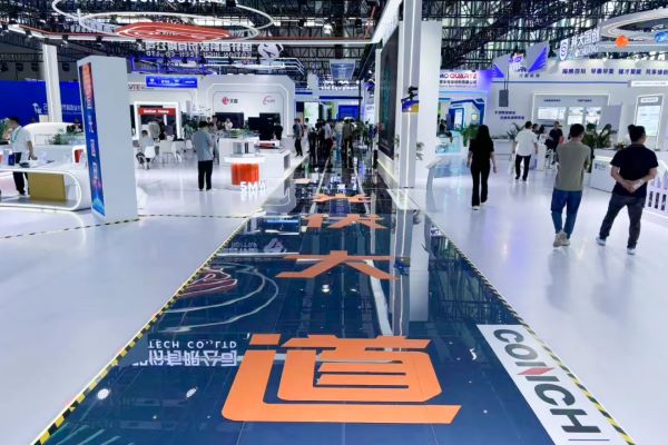 海螺集团展馆围绕产业转型升级主题,聚集海螺新能源、新材料、数字经济产业链,通过沙盘展示、实物模型、视频演播、互动体验等多种形式,集中展示海螺实施创新驱动,推动产业高端化、智能化、绿色化发展的丰硕成果。海螺智能质量控制系统、供销物流管控系统、袋装水泥机器人自动装车系统、安徽省外贸综合服务平台、安天智采招标采购电子交易平台、全过程数字管理平台,以及海螺新材全屋定制、海螺建筑光伏、海螺全钒液流储能、海螺科创外加剂与工业制剂等悉数参展。