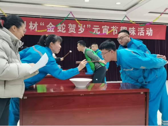 山东型材公司组织开展了“金蛇贺岁迎春来,张灯结彩闹元宵”趣味活动,全体员工欢聚一堂,沉浸于欢庆氛围中。大家积极参与趣味游戏,热情投入猜灯谜的智慧挑战,细细品尝软糯香甜的汤圆,并亲手制作精美花灯。