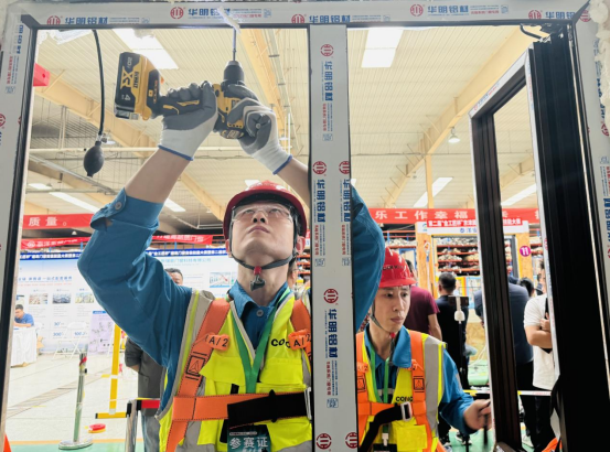 为备战此次大赛,唐山海螺型材公司选派团队进行了系统性的赛前准备,制定了详细的参赛作业指导书。比赛过程中,公司参赛团队严格按照标准化作业流程,在场地准备、洞口测量、框扇安装、密封处理等环节均表现出色,最终以优异的安装质量获得评委一致认可,斩获此次门窗安装大赛一等奖。