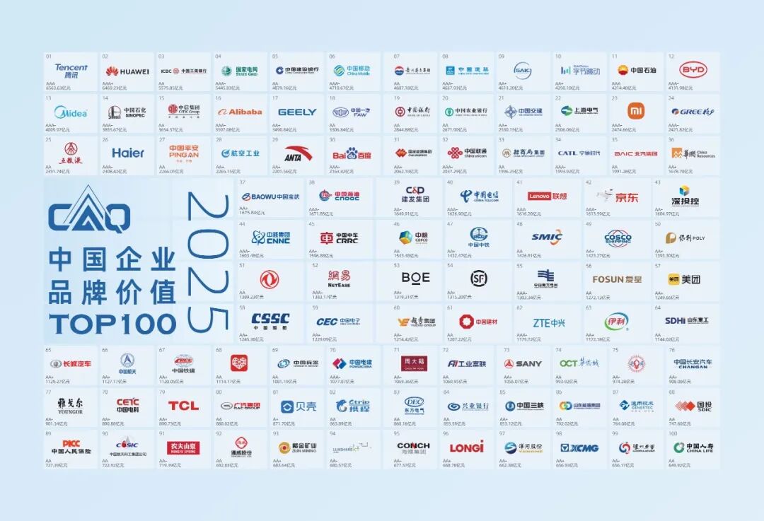 2025中国企业品牌价值TOP100