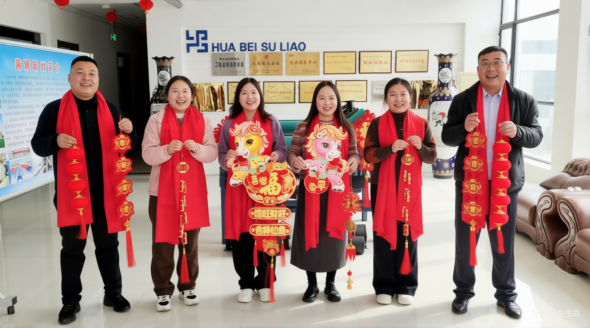 天河环境、华北塑料、宁波型材、泰国建材 /手捧福瑞拜大年