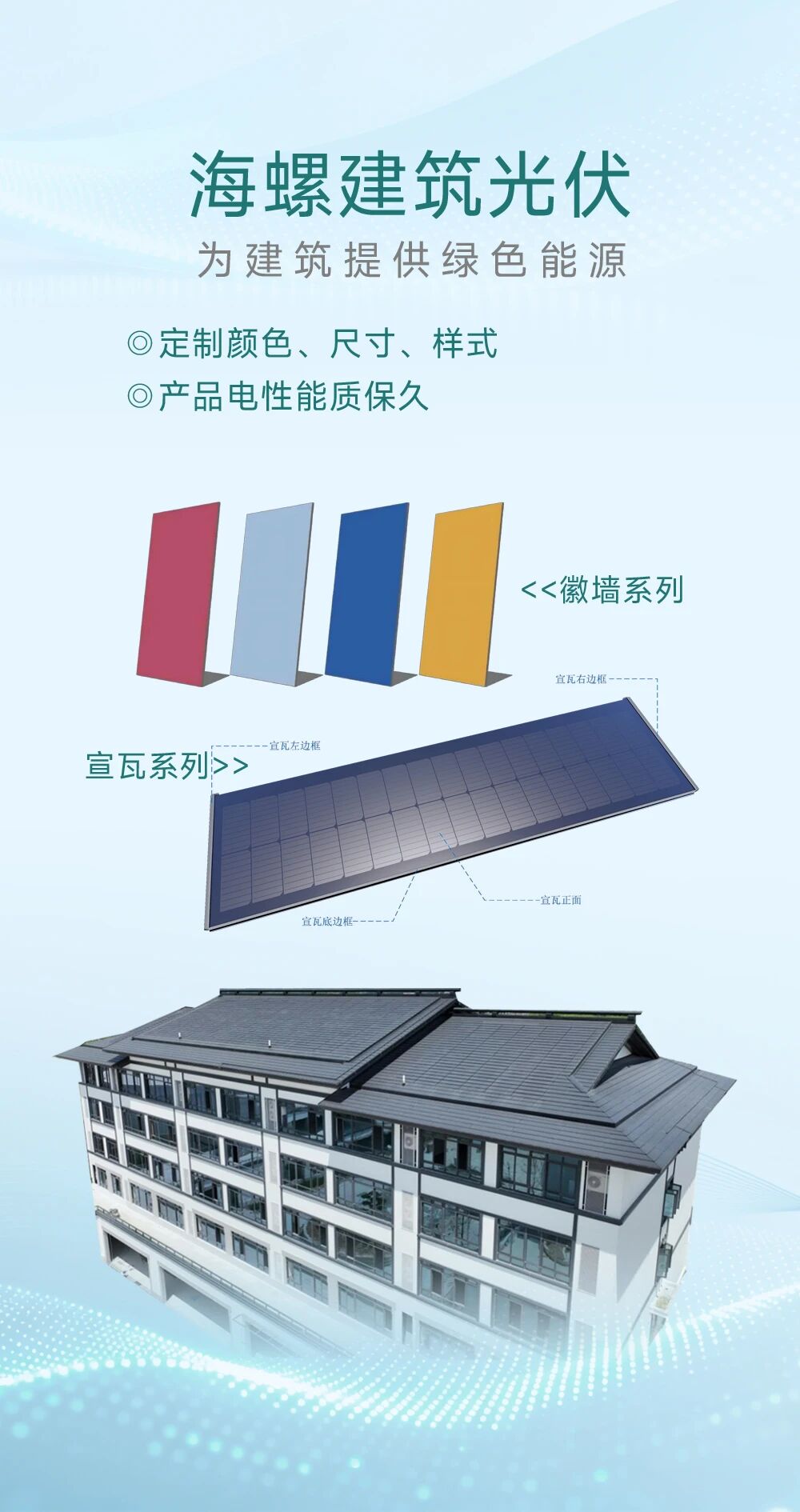 绿色是“好房子”的时代底色海螺建筑光伏与节能门窗协同发力打造超低能耗绿色居所使家与自然和谐共生海螺光伏幕墙与平面光伏瓦让墙面与屋顶变身“绿色小电站”自发自用、自给自足、节能减碳建筑与能源一体化持久获得发电附加收益省钱更环保、美观又实用
