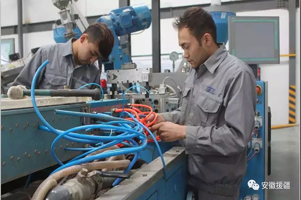 海螺公司作为安徽援疆指挥部2017年引入的重点援建企业,是国内首家以塑料型材为主业的上市公司。皮山县生产基地项目于2017年7月11日竣工投产。项目总投资1亿元,安装有8条生产线及配套辅助设施,年产2万吨塑料型材。“我们注重解决当地劳动力就业问题,大部分招收的是当地职业院校学生,以及皮山县各乡镇农民。公司专门为他们建立了一个技能职业培训中心,让他们先培训后上岗,直接解决就业500人,带动皮山县农牧民2000多人就业,帮助他们的家庭解困脱贫。”海螺型材有限责任公司副总经理余招友对记者说。