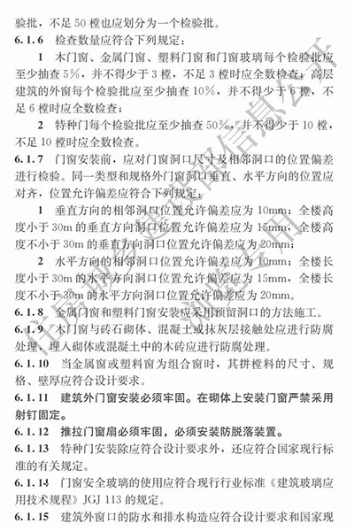 其中,第3.1.4、6.1.11、6.1.12、7.1.12、11.1.12条为强制性条文,必须严格执行。原《建筑装饰装修工程质量验收规范》GB50210-2001同时废止。
