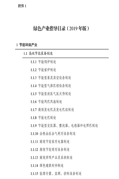 附件:1. 绿色产业指导目录(2019年版)