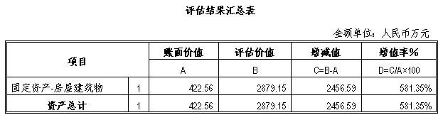 6、资产评估结果汇总表: