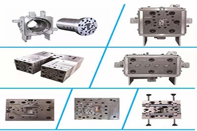 02 我们引进欧洲先进的模具设计理念,定型部分尺寸几何渐变,合理的真空设置和高效均匀的冷却循环系统,节能高效且操作人性化;结合市场需求,研发制造单段式(400mm)高速挤出模具、多段式高速挤出模具,木塑、发泡等模具。
