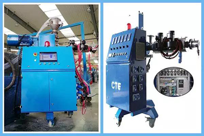 03 我们研制的共挤机可生产PVC/PMMA/ASA等共挤原料,用于彩色共挤和胶条共挤。关键电气元器件部件均采用国内外知名品牌,通过简单调整以达到横向、纵向移动及全方位360度旋转,高度调节范围1000mm-1600mm,手动微调+/-5mm。