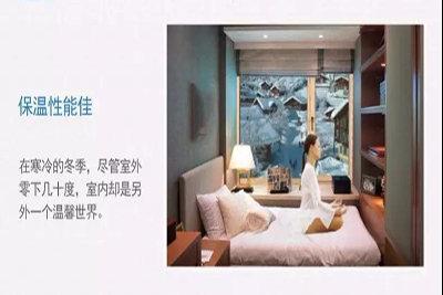 节能效果佳 型材多腔体、大断面,保证了系统的保温效果,内置百叶或增配卷帘,遮阳效果良好,提升了系统的整体节能性能,是被动式房屋最佳选择。