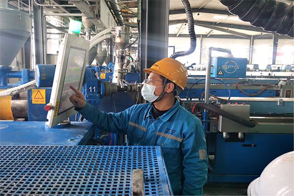 深入一线,破解岗位疑难问题。为改善工作环境,提高劳动效率,针对SPG共挤机模头更换困难情况,对9台SPG共挤机进行了旋转模头改造工作,降低了岗位换模劳动强度。牵头实施挤出机定型台降噪技改,进一步解决了各类真空泵排气的嗡鸣声,现场噪音明显改善。针对辅材模具水箱重量较大,拆装较为频繁问题,对1#平台实施了吊装改造,降低换模劳动强度。针对门窗铝材码放占地较大,空间利用不高情况,通过采购成品料架自行组装的方式在原料库房安装了立体货架,提高了铝材码放数量。为缩短大池清理时间,利用集中停电检修,对各类池底地坑进行找平并制作斜坡,减少后期清理岗位劳动强度,并对所有挤出机地沟盖板处理,将盖板开槽沉入地面,保持与地面水平,降低安全风险。同时咬住问题不放松,牵头解决物资系统运行慢问题以及混料报表打印易出错的历史遗留问题。